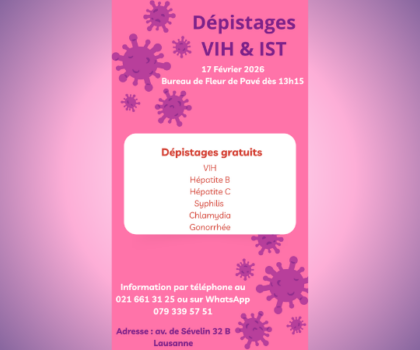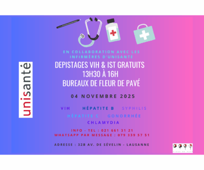 Des tests de dépistage vous sont proposés gratuitement par Fleur de Pavé en collaboration avec Unisanté (CHUV). (suite…)
