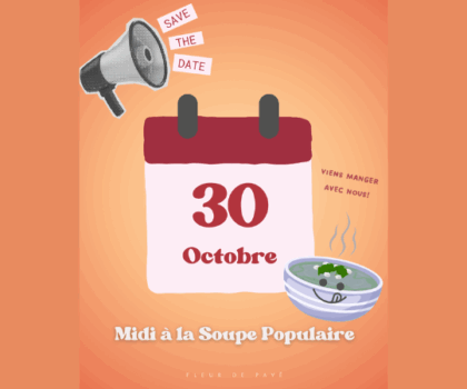 Fleur de pavé te propose de venir découvrir la Soupe Populaire et de partager avec l'équipe un repas chaud gratuit. La prochaine sortie